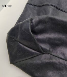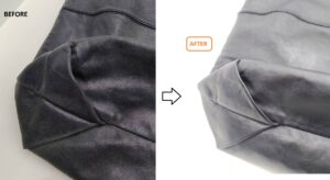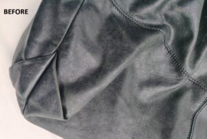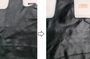 ①クリーニングして汚れを落とし皮脂など染み込んだ脂分を抜く脱脂処理
