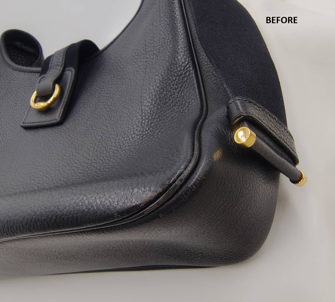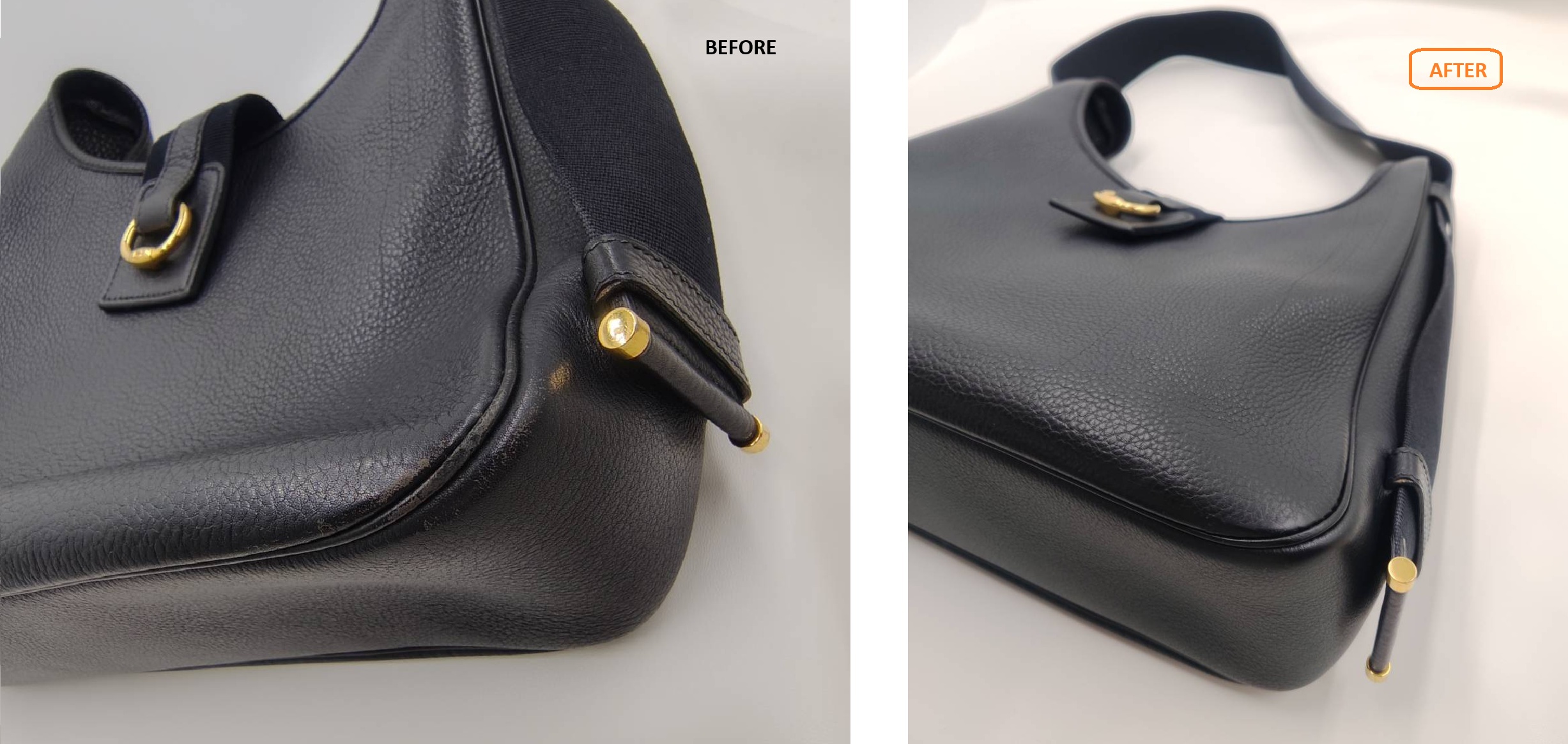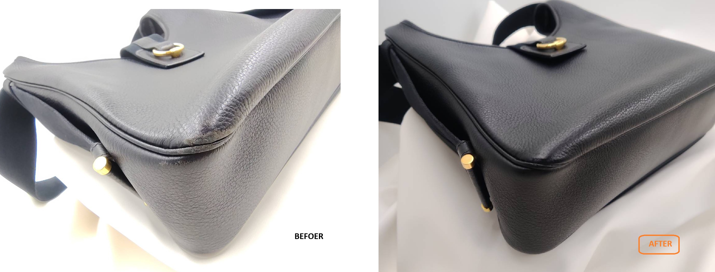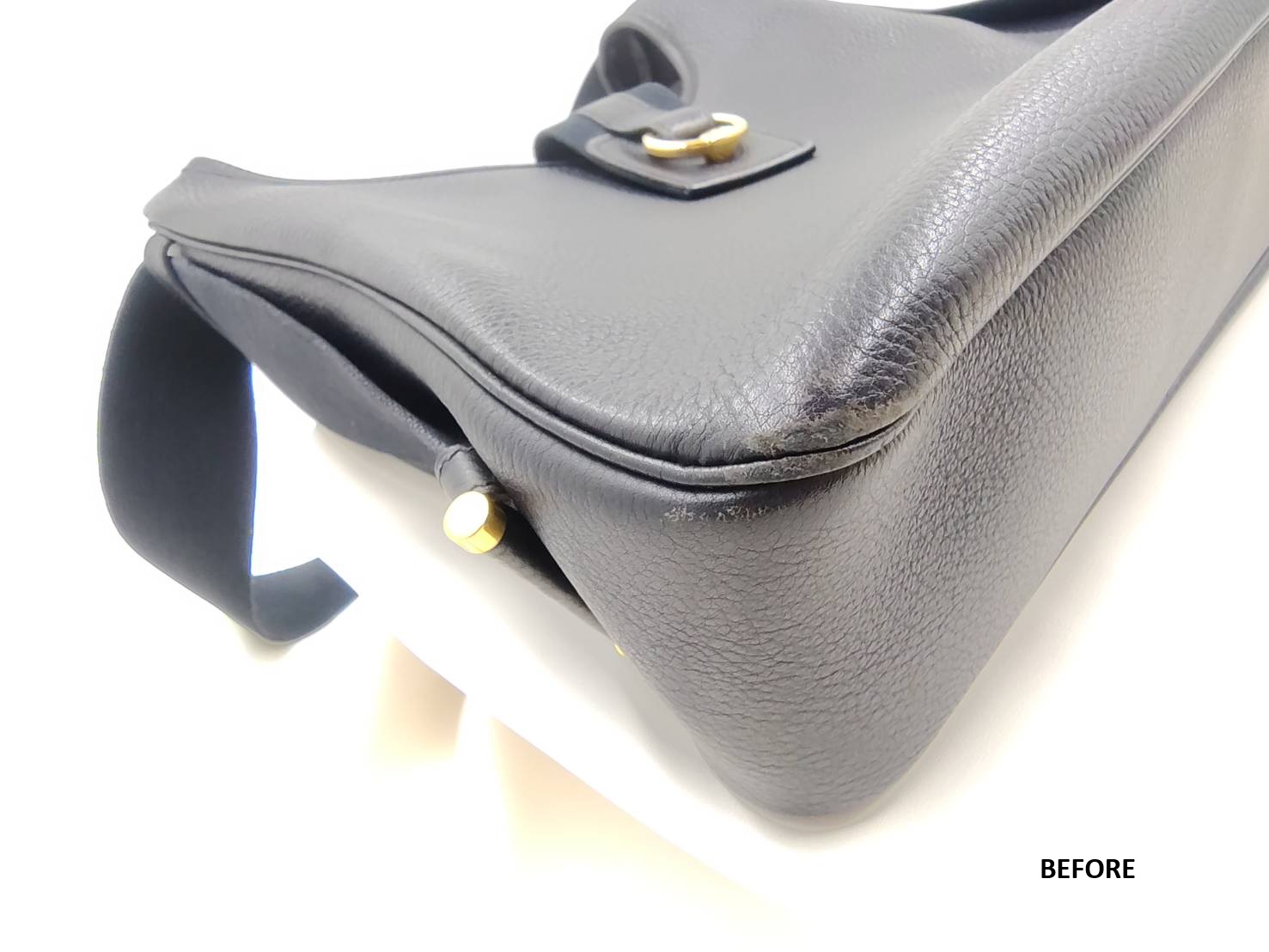【HERMES ショルダーバッグ サコ 修理】|角スレの補修 色あせ補修 染め直し