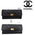 革財布(サイフ)、小銭入れ、キーケース等の小物全般の革のキズ、スレをキレイに修理いたします。CHANEL(シャネル)GUCCI(グッチ)等のブランド革小物の修理ももちろんOKです。